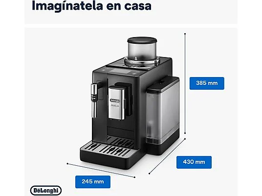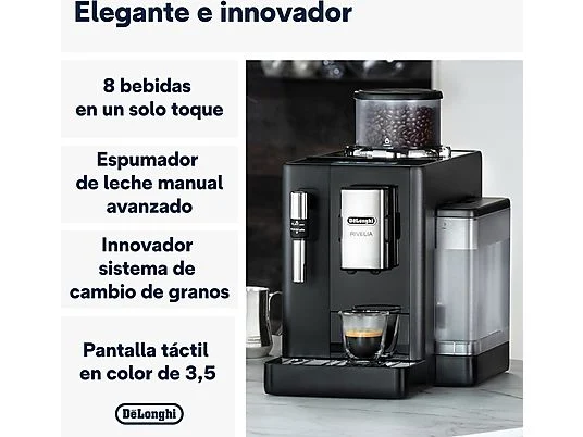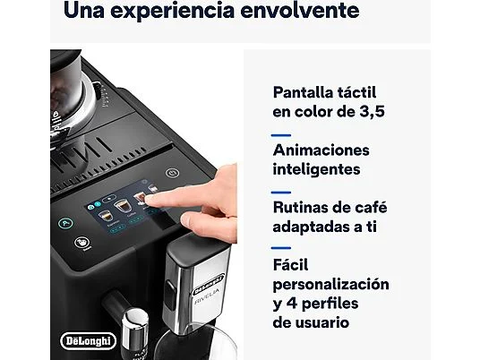 Cafetera superautomática – De’Longhi Rivelia EXAM440.35.B, Molinillo integrado, Espumador leche, Táctil, 4 perfiles, 8 recetas, 19bar, 1450W, Negro