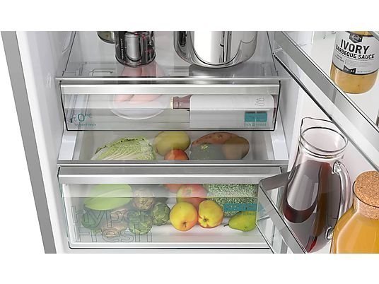 Función HyperFresh 0ºC: Llena tu nevera con todas las frutas y verduras que quieras. Y para las carnes y pescados, tienes un compartimento con su propio suministro de aire frío, que mantiene los alimentos en perfectas condiciones durante más tiempo. Más espacio y conservación ideal, en un mismo sistema.