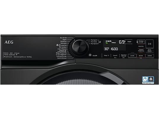 On/Off, Temperatura, Centrifugado, Antimanchas, Terminar en / Control remoto, Secado automático, Tiempo de secado, Modo lavado, Modo secado, Modo vapor, Ahorro de tiempo, Lavado con Pods, Inicio/Pausa