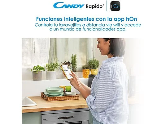 Gracias a la conectividad Wi-Fi puedes controlar a distancia tu lavavajillas mediante la app hOn. Además, podrás acceder a diversos consejos, recomendaciones y nuevas funcionalidades para un día a día más Eficaz. Cuenta como novedad con la función Snap&Wash que te recomienda el mejor ciclo con tan solo tomar una foto.