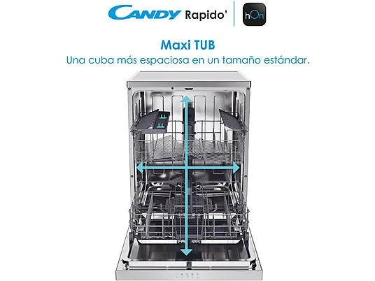 Cuenta con una cantidad de espacio superior a lo visto, hasta ahora en el mercado con un tamaño estándar gracias a Maxi TUB; equipado con una cuba más espaciosa para permitirte un mayor espacio de carga de utensilios, incluso tan grandes como bandejas de hornos o tablas de cortar.